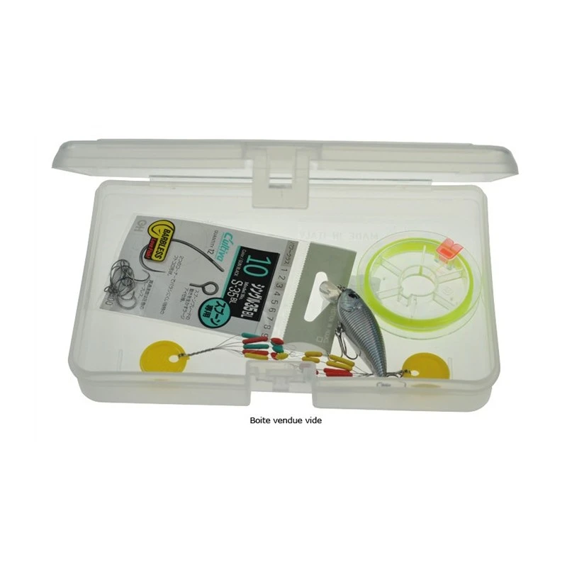 Boîte plastique transparente à 1 case pour ranger les leurres et petits accessoires.