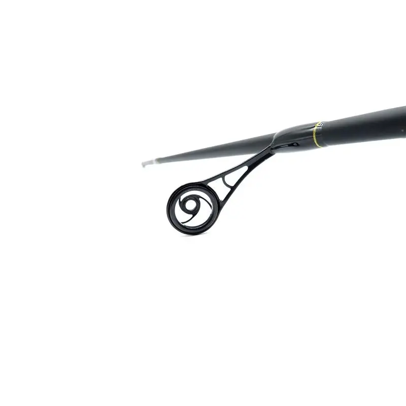 Après de multitudes tests, nous avons conçu un blank en carbone excellent avec une action medium-fast. (plus fast que medium). Cette action dans le but d’éviter les décrochés. Doté d’une grosse réserve de puissance, la canne recadrera facilement les très beaux sujets.