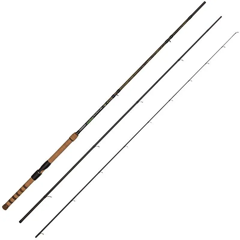 Ces versions de cannes appâts naturels GARBOLINO MAGIRUS LIVE AN sont le complément plus « classique » de notre version MAGIRUS NYMPHE. Disponibles en taille unique de 3m90 mais en 2 puissances ; elles sont parfaitement adaptées aux rivières moyennes que ce soit pendant l’ouverture ou en période d’étiage. L’action douce mais nerveuse permet à la fois de lancer les appâts mais aussi de bien percevoir les touches mêmes très discrètes. La grande réserve de puissance contenue dans le talon permet de bien brider les rushs des poissons et facilite aussi une mise à l’épuisette rapide et efficace. Les anneaux utilisés possèdent comme la version nymphe des inserts métalliques qui ont une surface extérieure à la dureté extrême, il n’y aura aucun risque d’usure prématuré du au frottement du fil. L’autre intérêt de ces anneaux c’est que du fait d’un leur faible section, les frottements du fil à leur surface sont très fortement limités, cela permet de lancer plus loin sans plus d’efforts. La poignée liège dont la longueur est parfaitement adaptée à cette technique, autorise le montage d’un moulinet type TOC ou lancer léger. Son positionnement pourra se faire très proche du haut pour ceux aimant avoir un contact avec toute la poignée, ou tout en bas pour ceux qui privilégient l’équilibre global. C’est une nouvelle fois la finition « LIVE » ou camouflage réaliste que nous avons choisi pour ces GARBOLINO MAGIRUS LIVE AN, cela donne à la série un look discret et moderne sans être tape à l’œil.